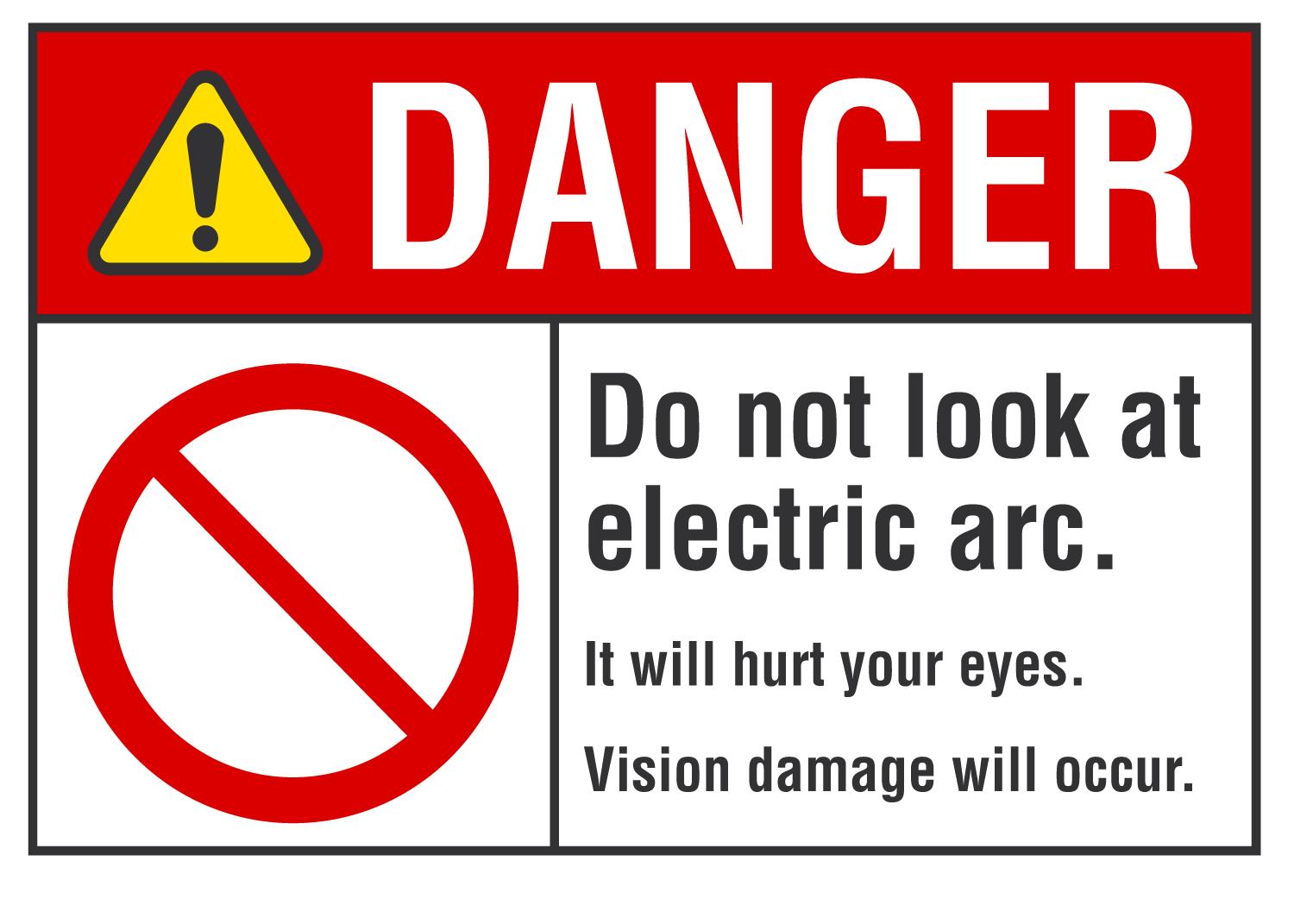 Danger ANSI Sign: Do Not Look At Electric Arc, It Will Hurt Your Eyes, Vision Damage Will Occur