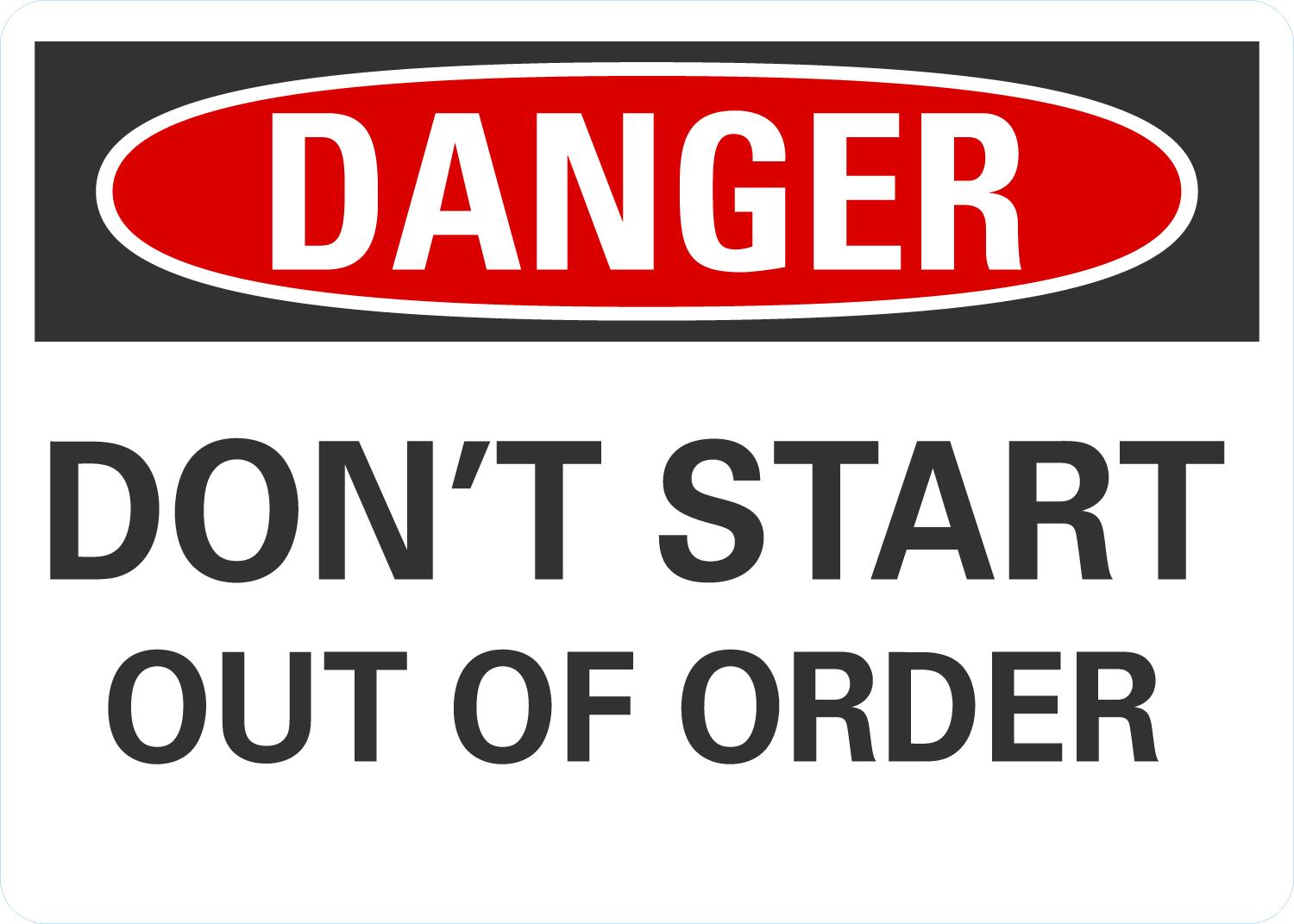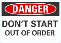 OSHA Danger Sign: Don't Start Out Of Order