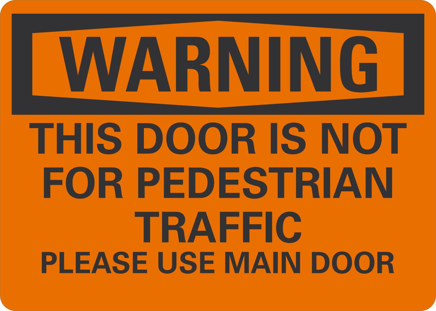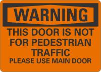 OSHA Warning Sign: This Door Is Not For Pedestrian Traffic Please Use Main Door