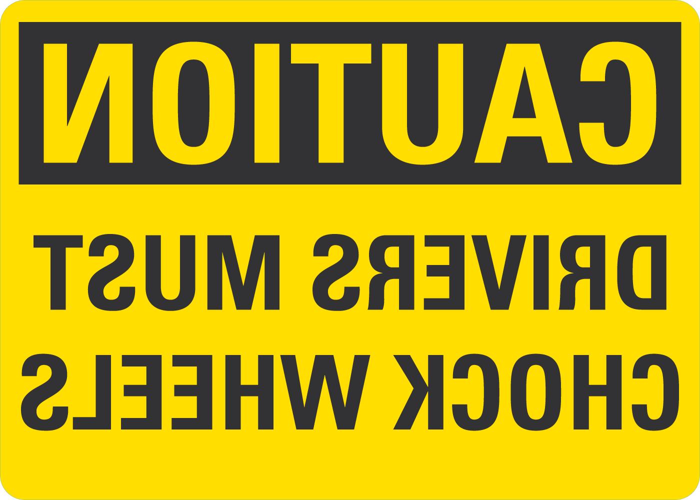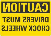 Caution OSHA Rear View Mirror Sign: Driver Must Chock Wheels
