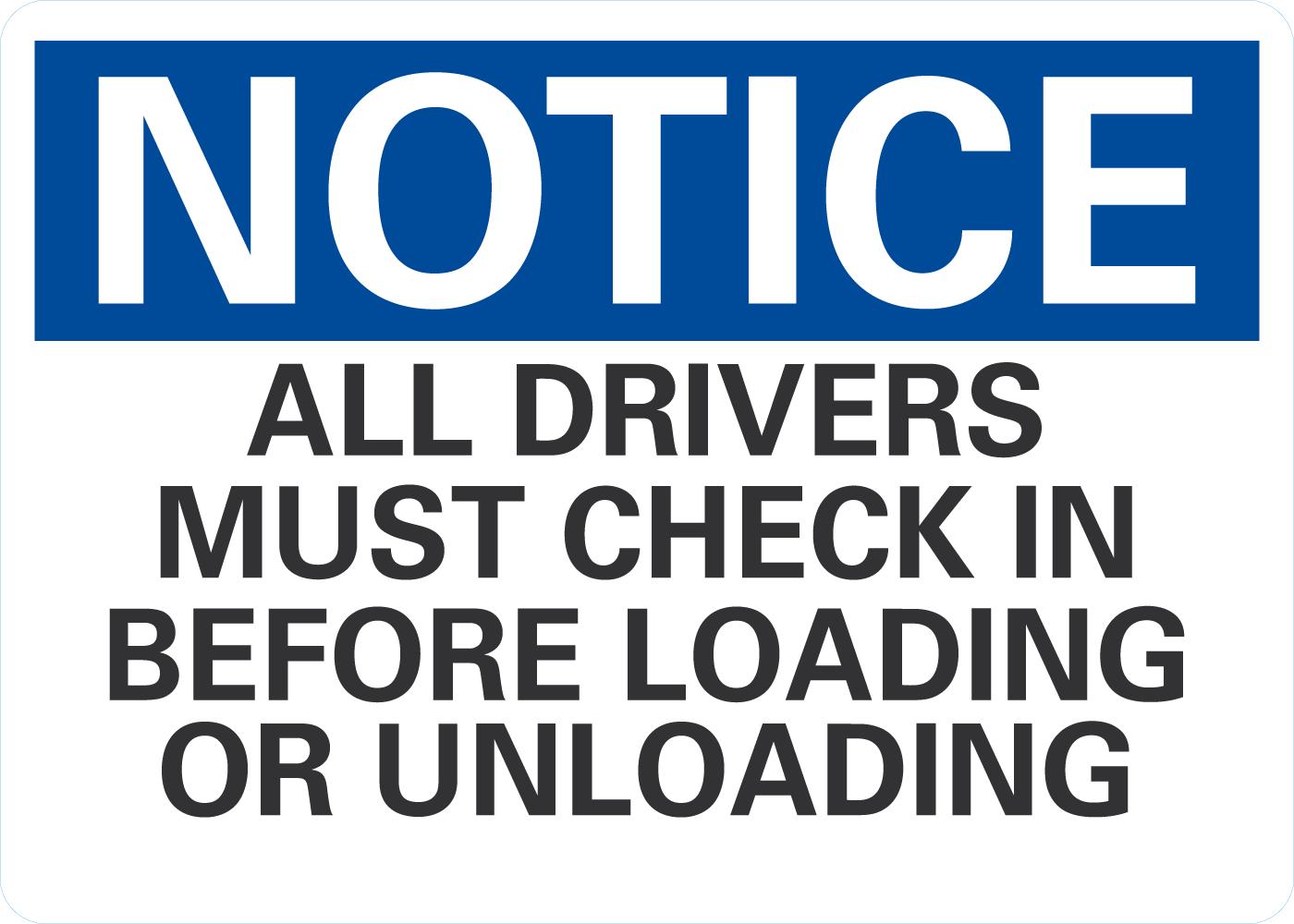 Notice OSHA Sign: All Drivers Must Check In Before Loading Or Unloading