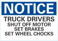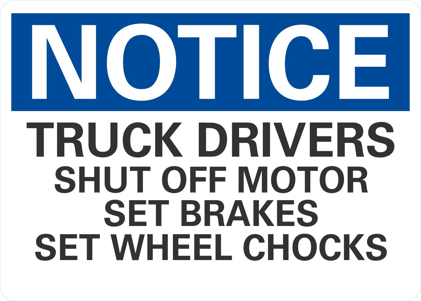 Notice OSHA Sign: Truck Drivers - Shut Off Motor, Set Brakes Set Wheel Chocks
