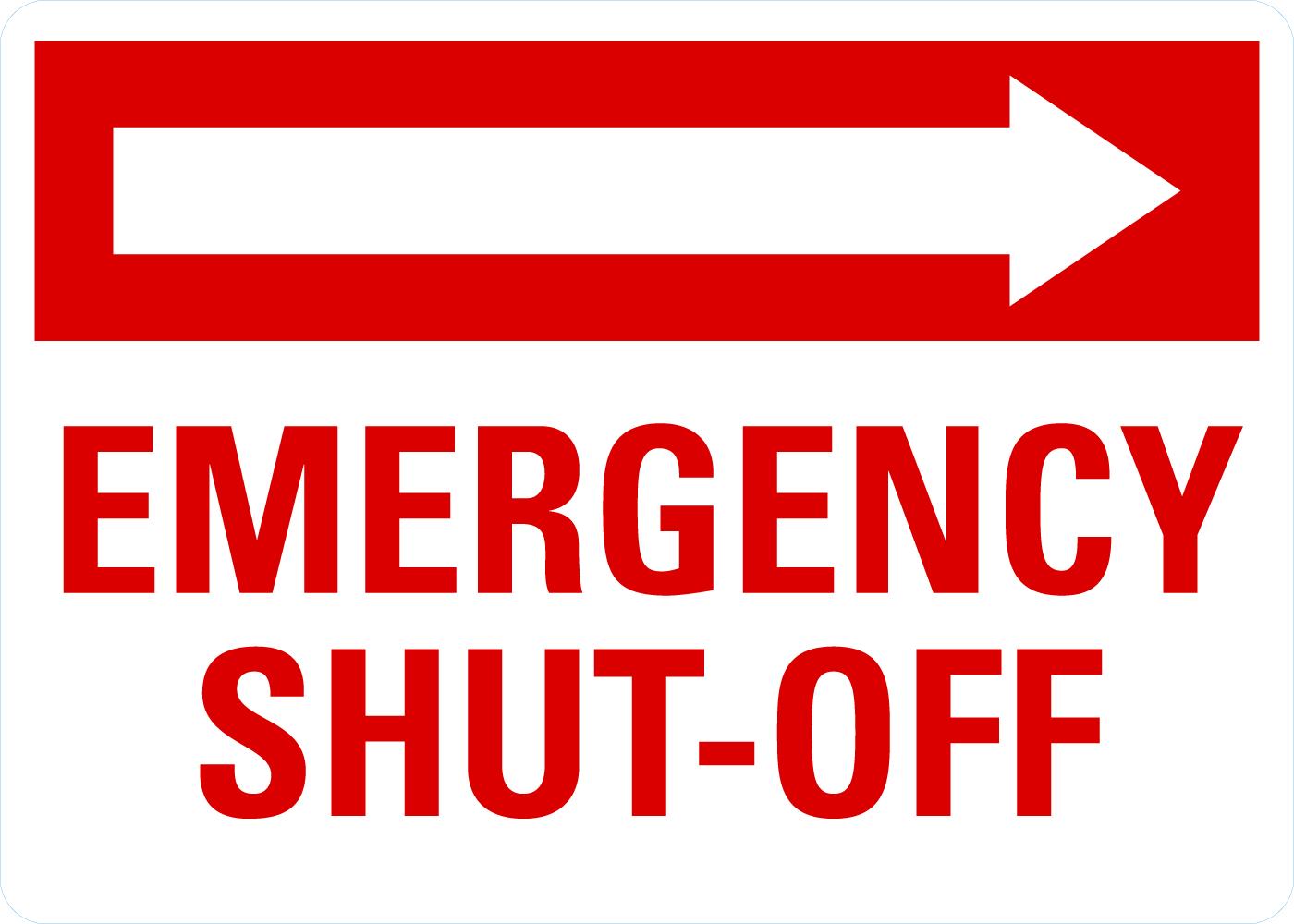 Emergency Alert Sign: Emergency Shut-Off With Right Arrow