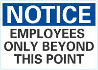Notice OSHA Sign: Employees Only Beyond this Point