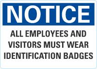 OSHA Notice Sign: All Employees And Visitors Must Wear Identification Badges