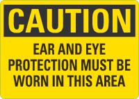 Caution OSHA Sign: Eye And Ear Protection Must Be Worn In This Area