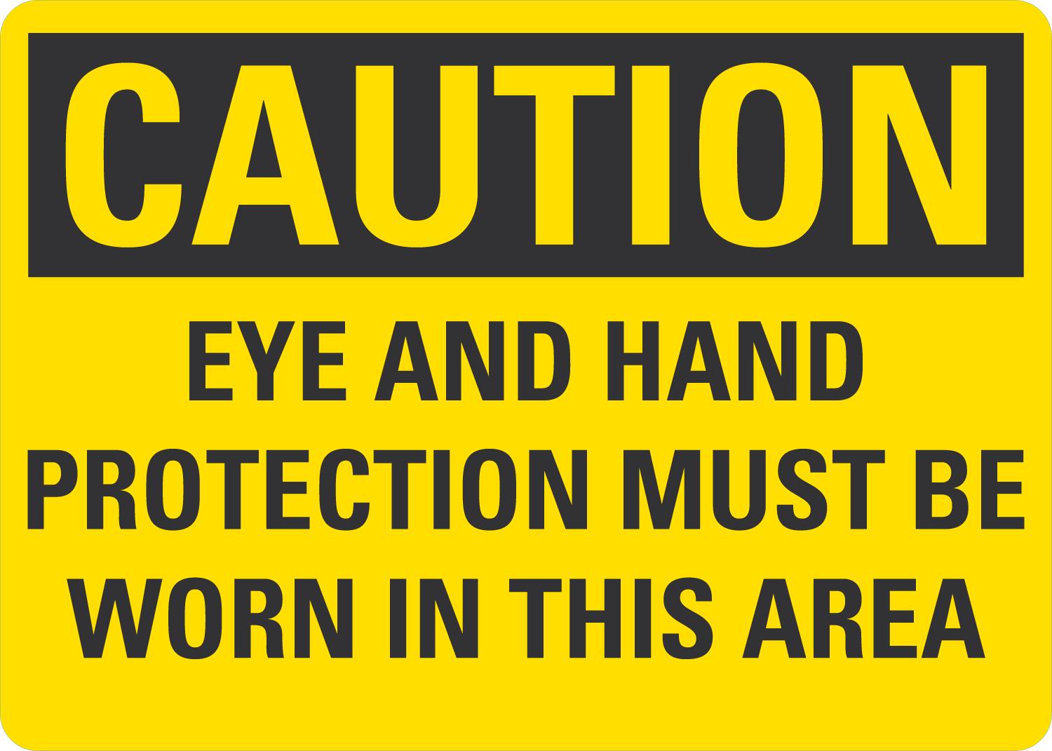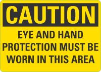 Caution OSHA Sign: Eye and Hand Protection Must Be Worn In This Area
