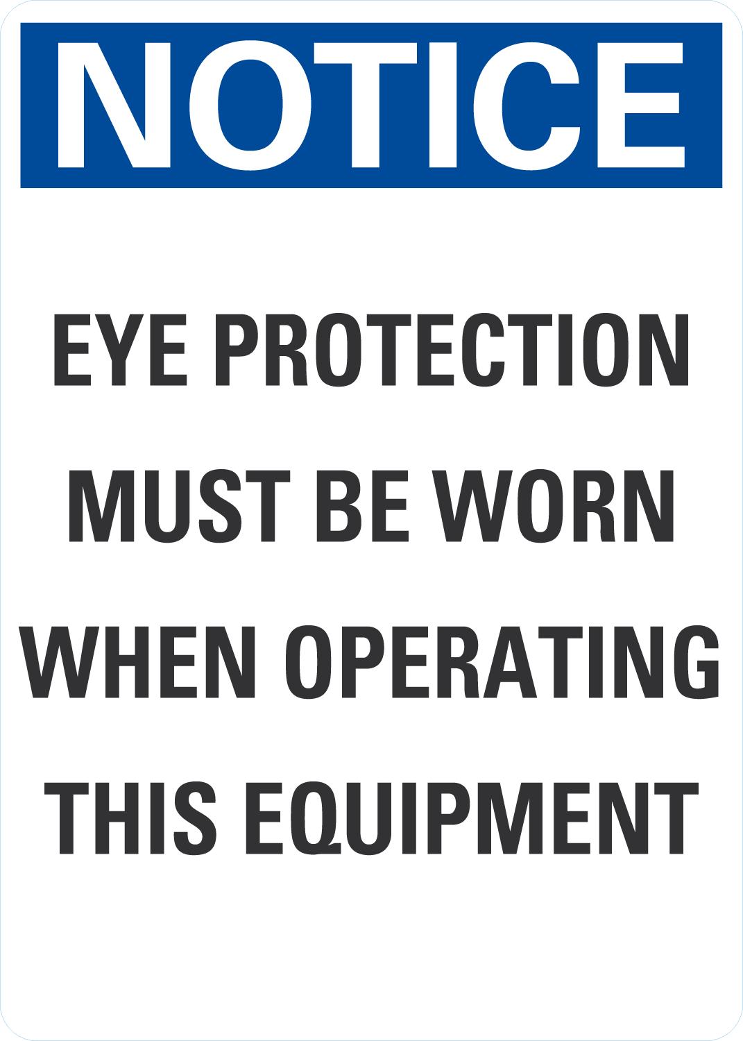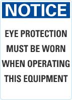 Notice OSHA Sign: Eye Protection Must Be Worn When Operating This Equipment (vertical)