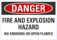OSHA Danger Sign: Fire & Explosion Hazard No Smoking Or Open Flames
