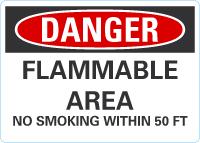 Danger OSHA Sign: Flammable Area No Smoking Within 50 Ft.