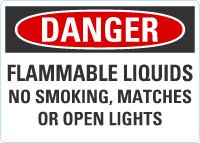 Danger OSHA Sign: Flammable Liquids - No Smoking, Matches Or Open Lights