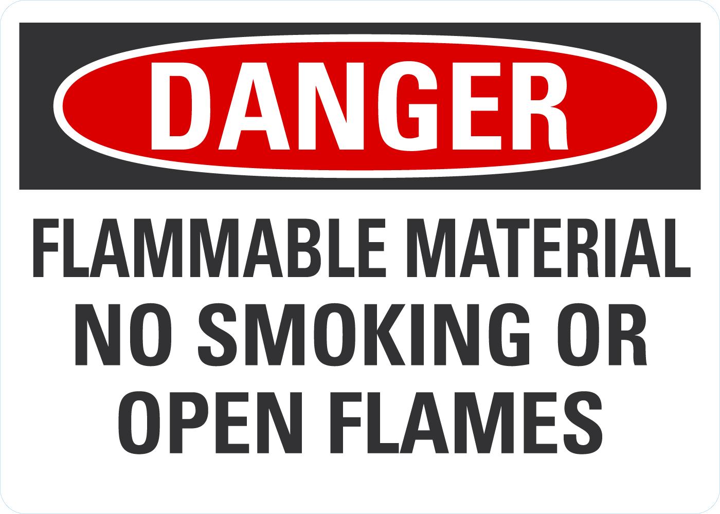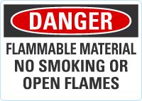 Danger OSHA Sign: Flammable Material - No Smoking Or Open Flames