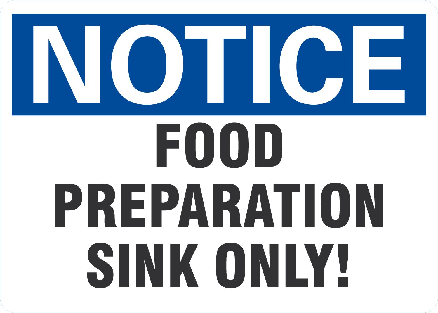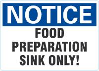 Notice OSHA Sign: Food Preparation Sink Only!