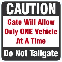 Caution Gate Warning Sign: Gate Will Allow Only One Vehicle At A Time Do Not Tailgate
