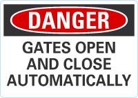 Danger OSHA Sign: Gates Open and Close Automatically