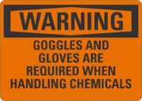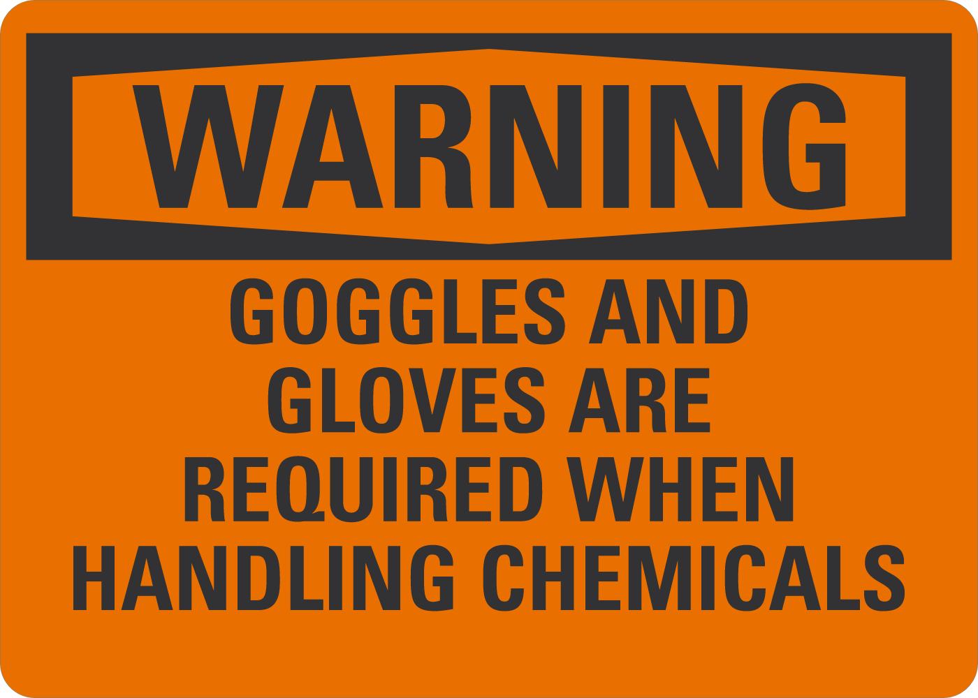 Warning OSHA Sign: Goggles and Gloves Are Required When Handling Chemicals