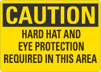 Caution OSHA Sign: Hard Hat And Eye Protection Required In This Area