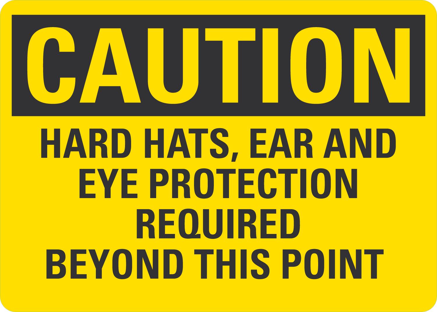 OSHA Caution Sign: Hard Hats, Ear And Eye Protection Required Beyond This Point