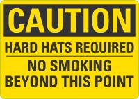 Caution OSHA Sign: Hard Hats Required - No Smoking Beyond This Point