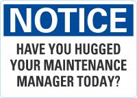 OSHA Notice Sign: Have You Hugged Your Maintenance Manager Today?