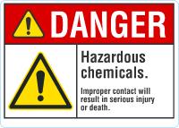 ANSI Danger Sign: Hazardous Chemicals - Improper Contact Will Result In Serious Injury Or Death
