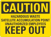 Caution OSHA Sign: Hazardous Waste Satellite Accumulation Point Unauthorized Employees Keep Out