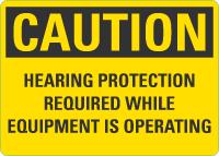 Caution OSHA Sign: Hearing Protection Required While Equipment Is Operating