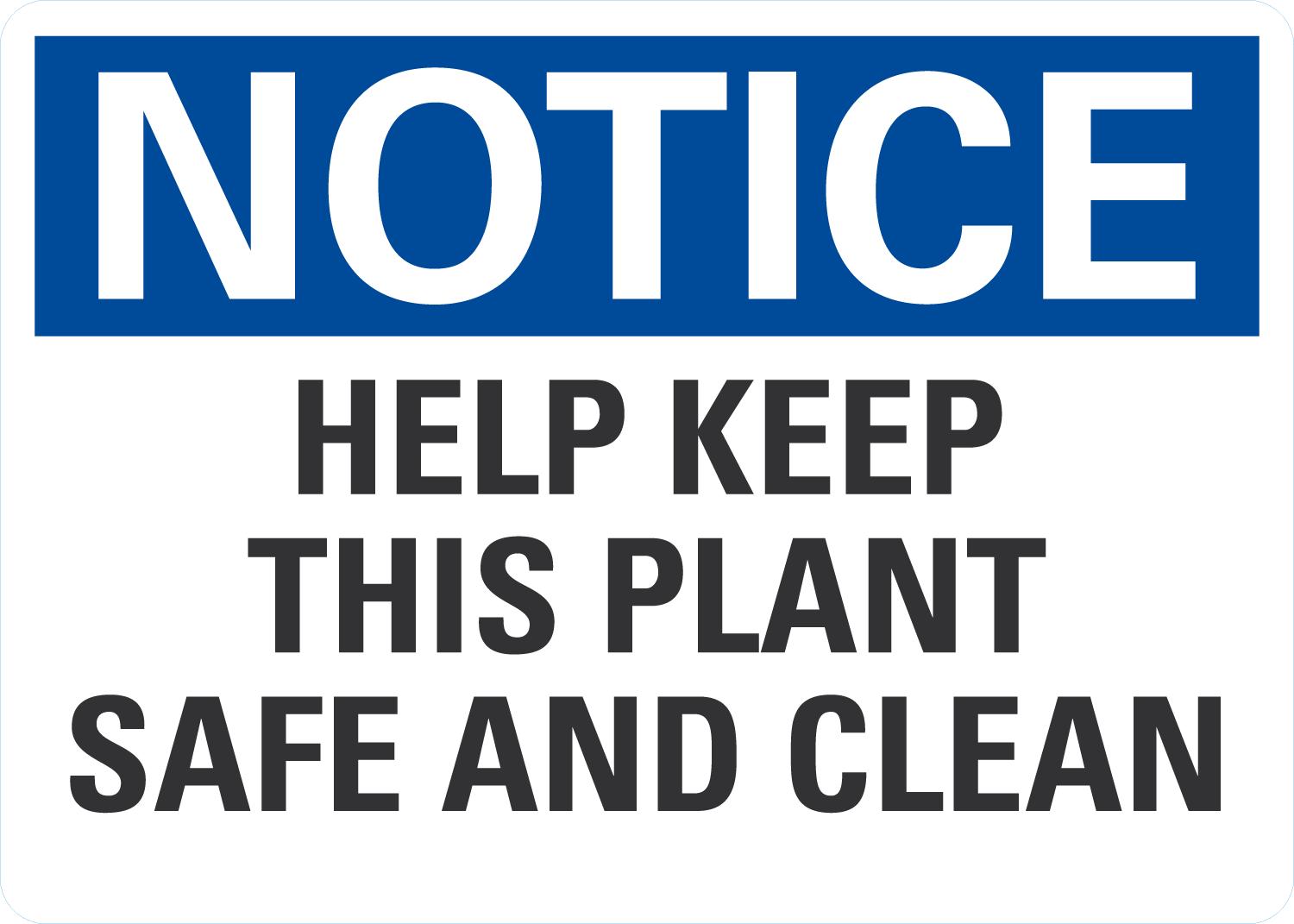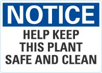 Notice OSHA Sign: Help Keep This Plant Safe And Clean