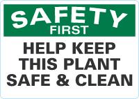 Safety First OSHA Sign: Help Keep This Plant Safe And Clean
