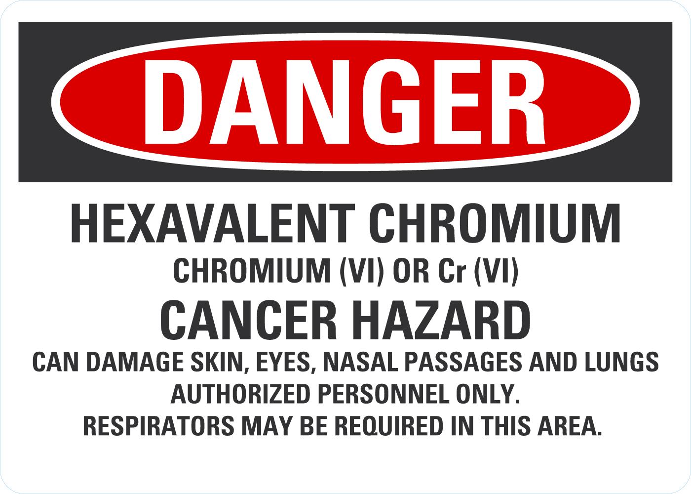 OSHA Danger Sign: Hexavalent Chromium - Cancer Hazard Can Damage Skin, Eyes, Nasal Passages & Lungs