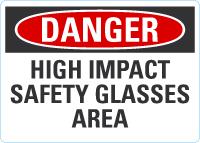 Danger OSHA Sign: High Impact Safety Glasses Area