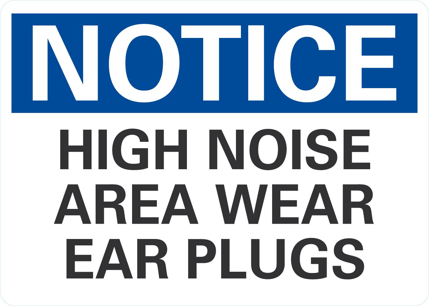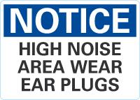 Notice OSHA Sign: High Noise Area Wear Ear Plugs