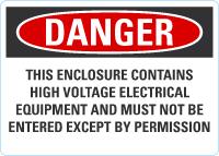Danger OSHA Sign: This Enclosure Contains High Voltage Electrical Equipment And Must Not Be Entered Except By Permission