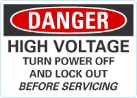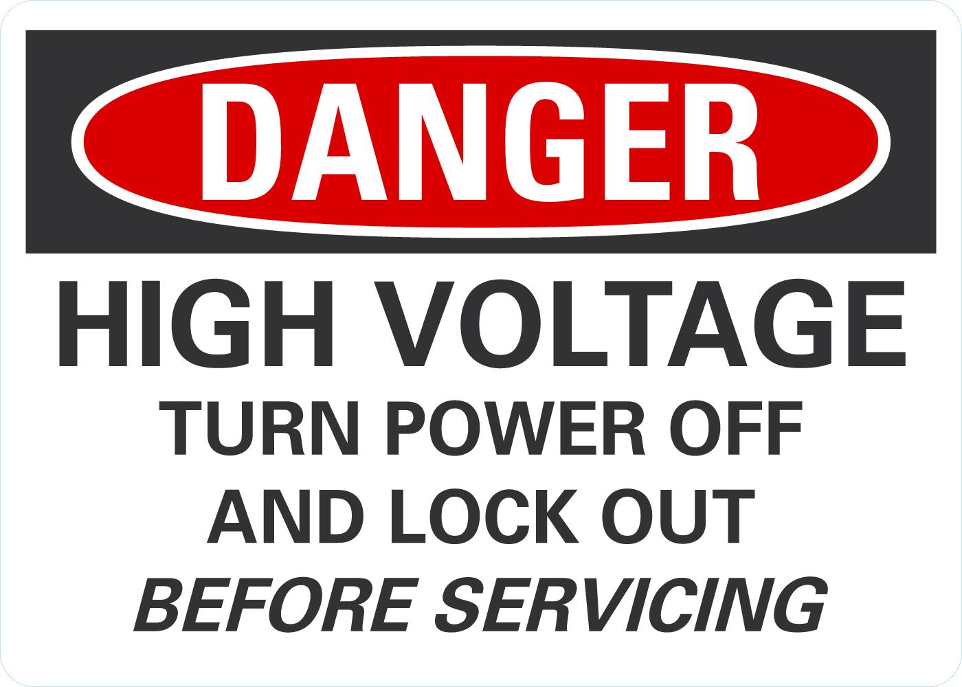 Danger OSHA Sign: High Voltage Turn Power Off And Lock Out Before Servicing