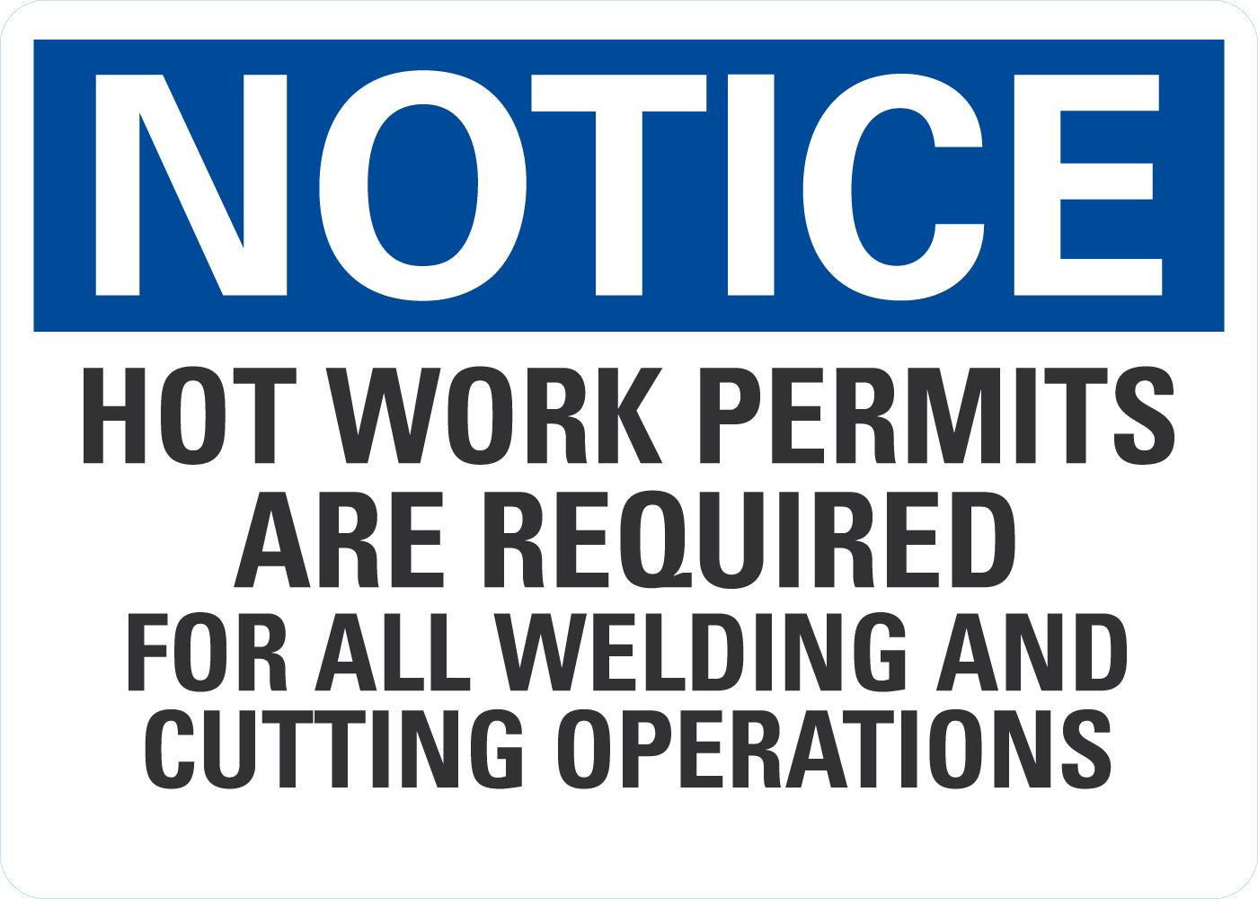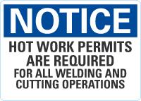Notice OSHA Sign: Hot Work Permits Are Required For All Welding And Cutting Operations