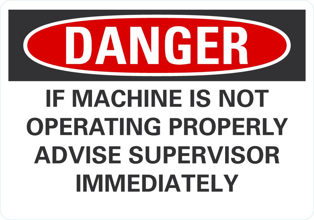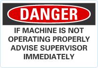 Danger OSHA Sign: If Machine Is Not Operating Properly Advise Supervisor Immediately