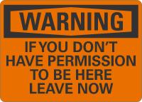 Warning OSHA Sign: If You Don’t Have Permission To Be Here Leave Now