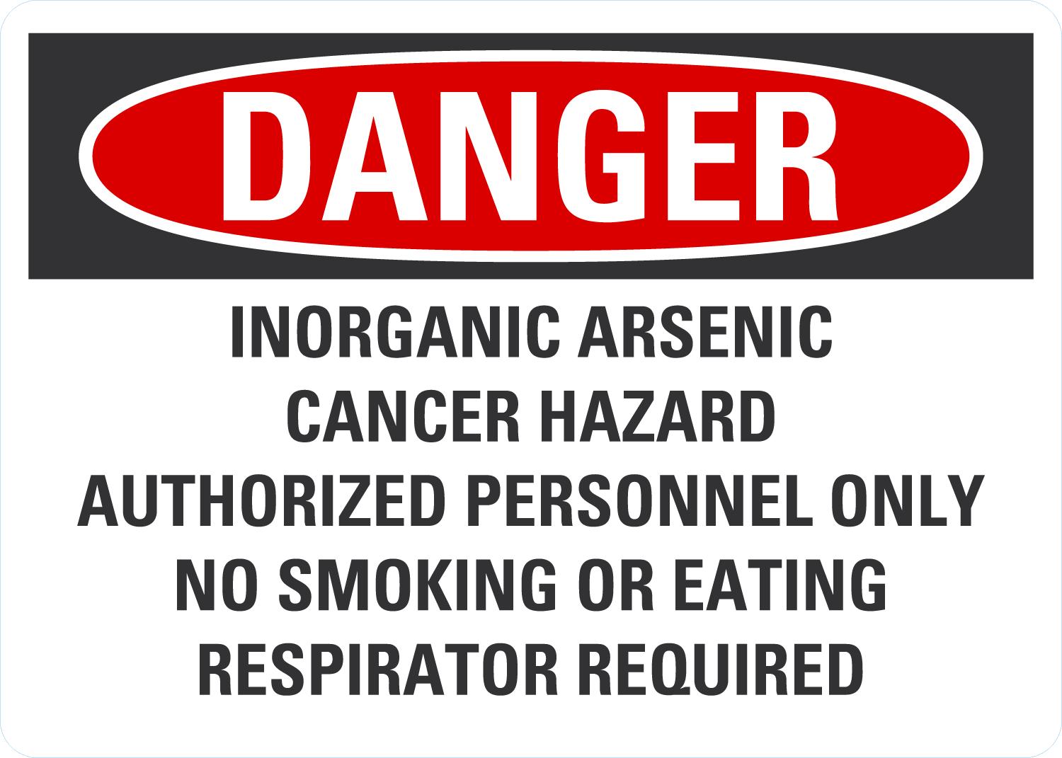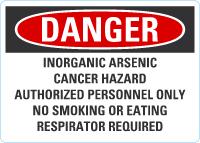 Danger OSHA Sign: Inorganic Arsenic Cancer Hazard - Authorized Personnel Only, No Smoking Or Eating Respirator Required
