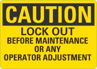 Caution OSHA Sign: Lock Out Before Maintenance Or Any Operator Adjustment