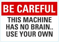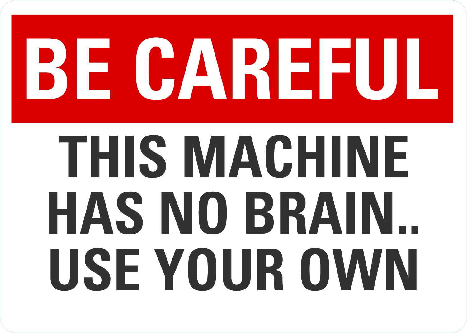 OSHA Be Careful Sign: This Machine Has No Brain, Use Your Own