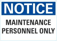 Notice OSHA Sign: Maintenance Personnel Only