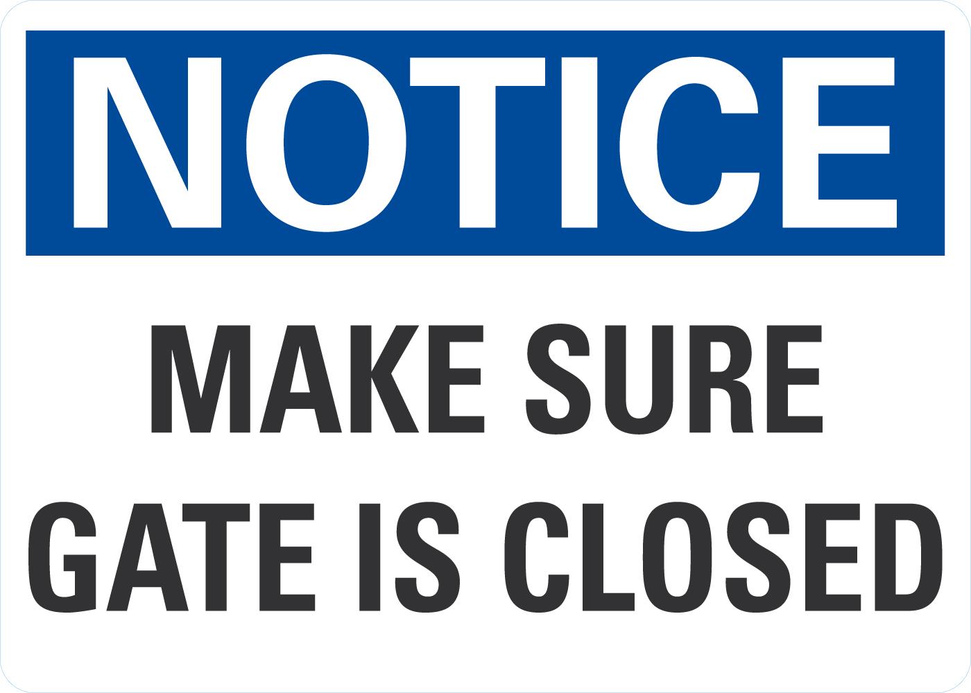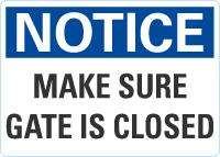 OSHA Notice Sign: Make Sure Gate Is Closed