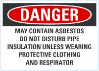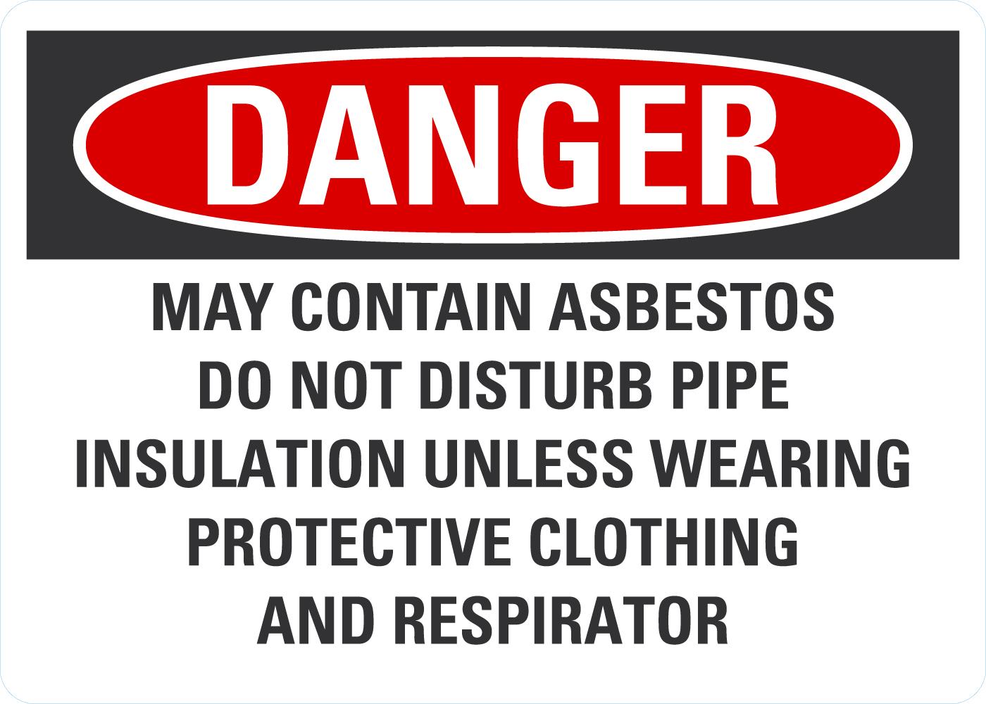 OSHA Danger Sign: May Contain Asbestos Do Not Disturb Pipe Insulation Unless Wearing Protective Clothing And Respirator