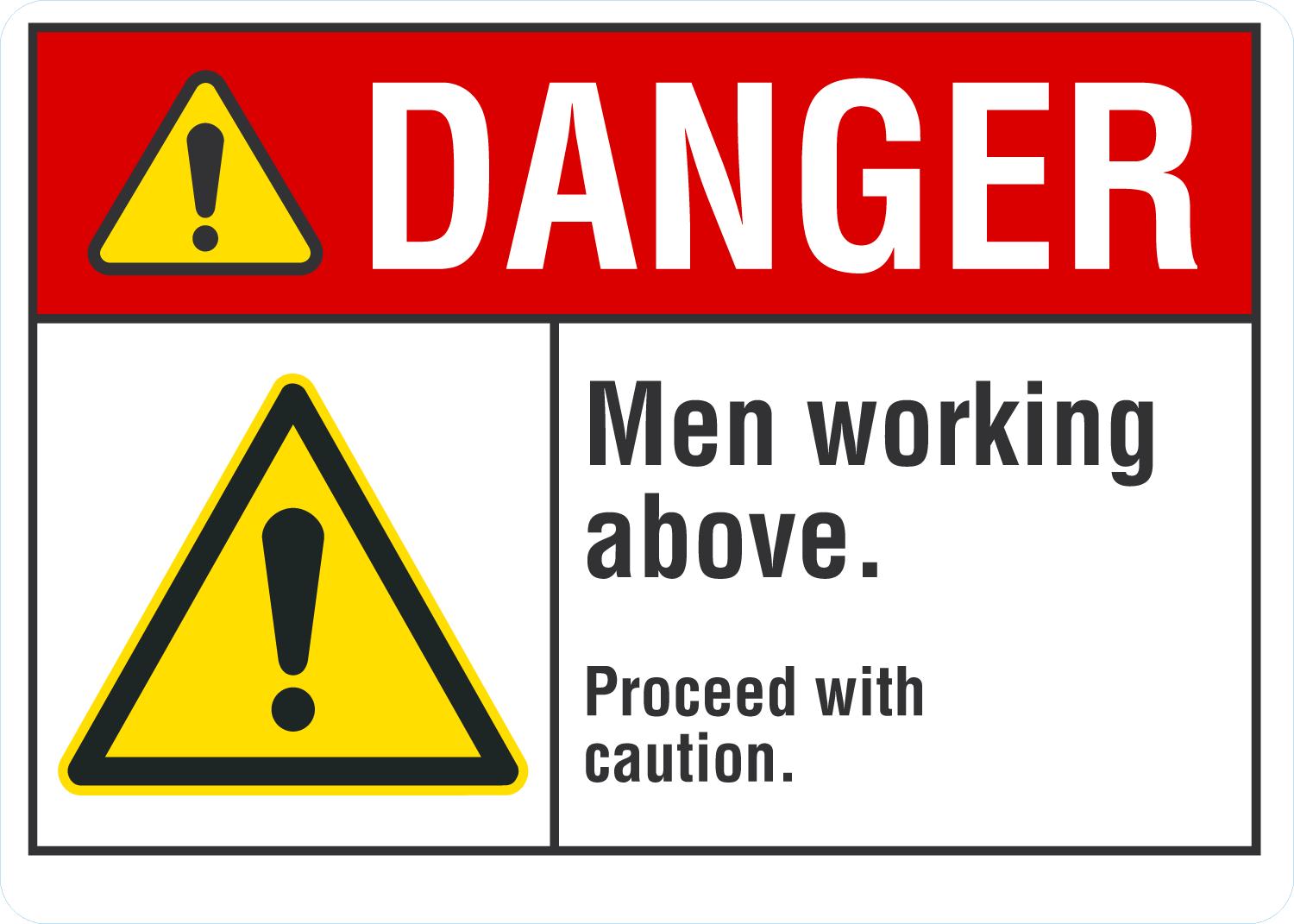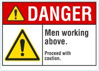 ANSI Danger Sign: Men Working Above - Proceed With Caution