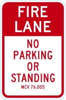 Michigan Fire Lane Sign: No Parking or Standing (MCV 76.005)