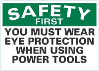 Safety First OSHA Sign: You Must Wear Eye Protection When Using Power Tools