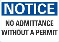 Notice OSHA Sign: No Admittance Without A Permit
