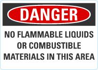 Danger OSHA Sign: No Flammable Liquids Or Combustible Materials Allowed In This Area