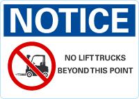 OSHA Notice Sign: No Lift Trucks Beyond This Point
