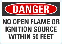 Danger OSHA Sign: No Open Flame Or Ignition Source Within 50 Feet